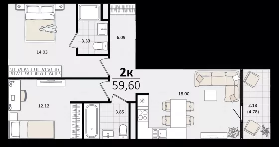 Продается 2-х комн. новостройка, 62 кв.м., 3/6 эт