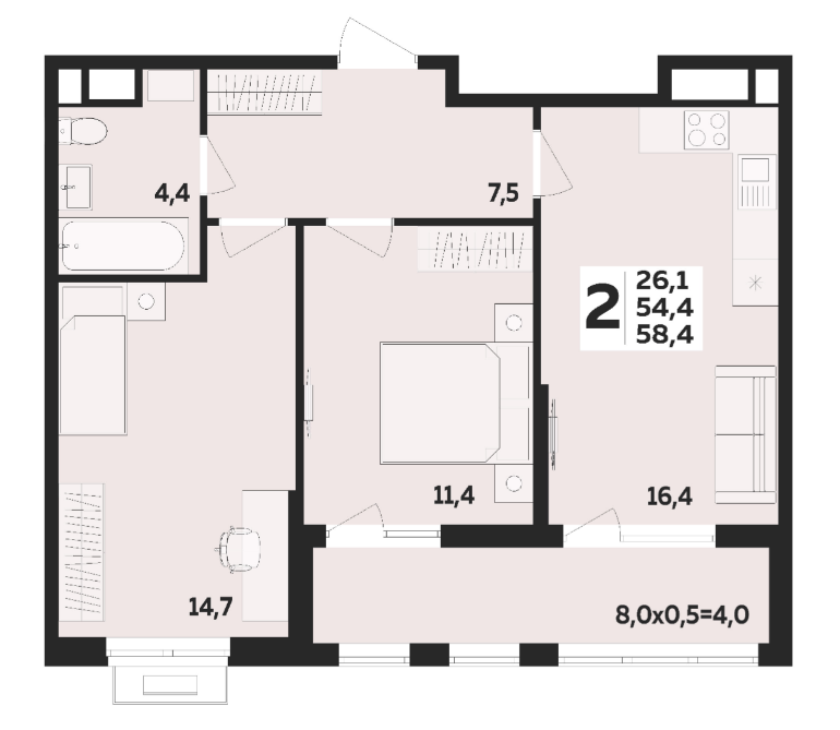 | Площадь, кв.м. | 58.4 |