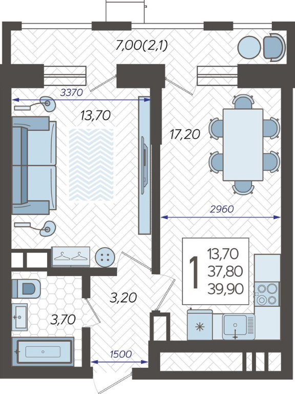 Однокомнатная квартира евроформата в новом комплексе класса комфорт+