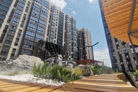 Шикарный стилобат с фонтаном, мангальными зонами, детскими и спортивными площадками, прогулочный бульвар с зонами для прогулок и отдыха.