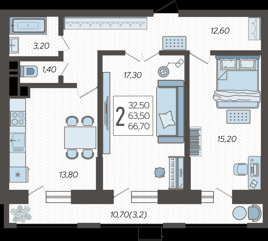 В избранное двухкомнатная квартира