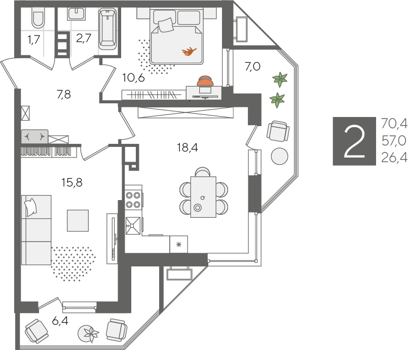 В избранное двухкомнатная квартира