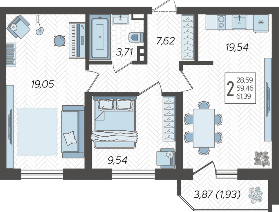 Продается 2-х комн. новостройка, 61.39 кв.м., 18/23 эт