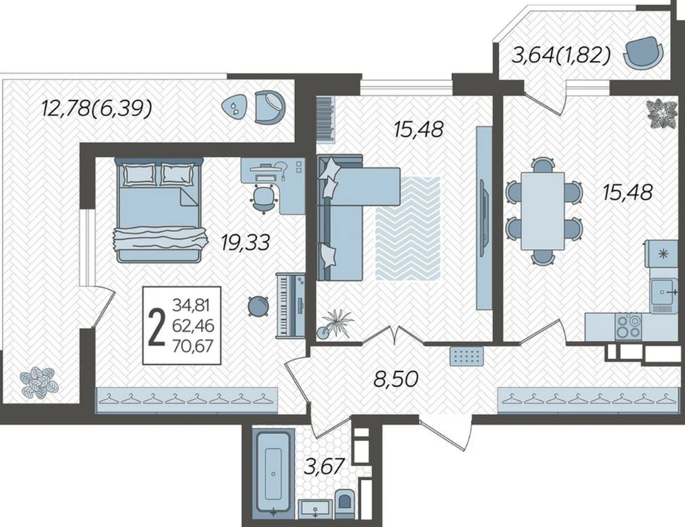 Продается 2-х комн. новостройка, 70.67 кв.м., 11/23 эт