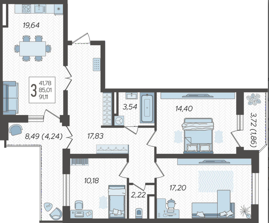Продается 3-х комн. новостройка, 98 кв.м., 16/23 эт