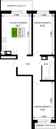 Продается 2-х комн. новостройка, 65 кв.м., 10/16 эт