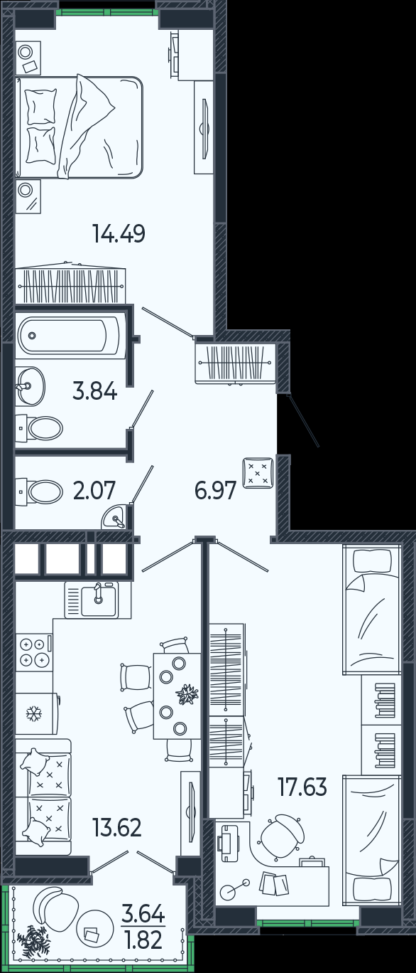 Продается 2-х комн. новостройка, 65 кв.м., 4/21 эт