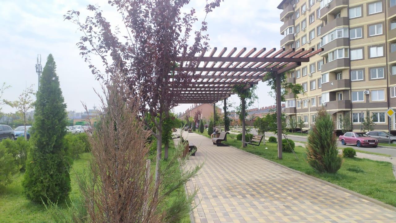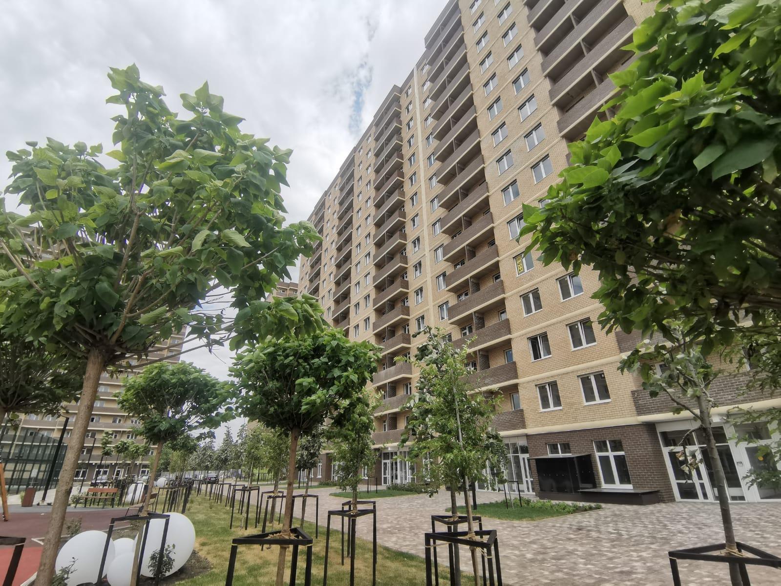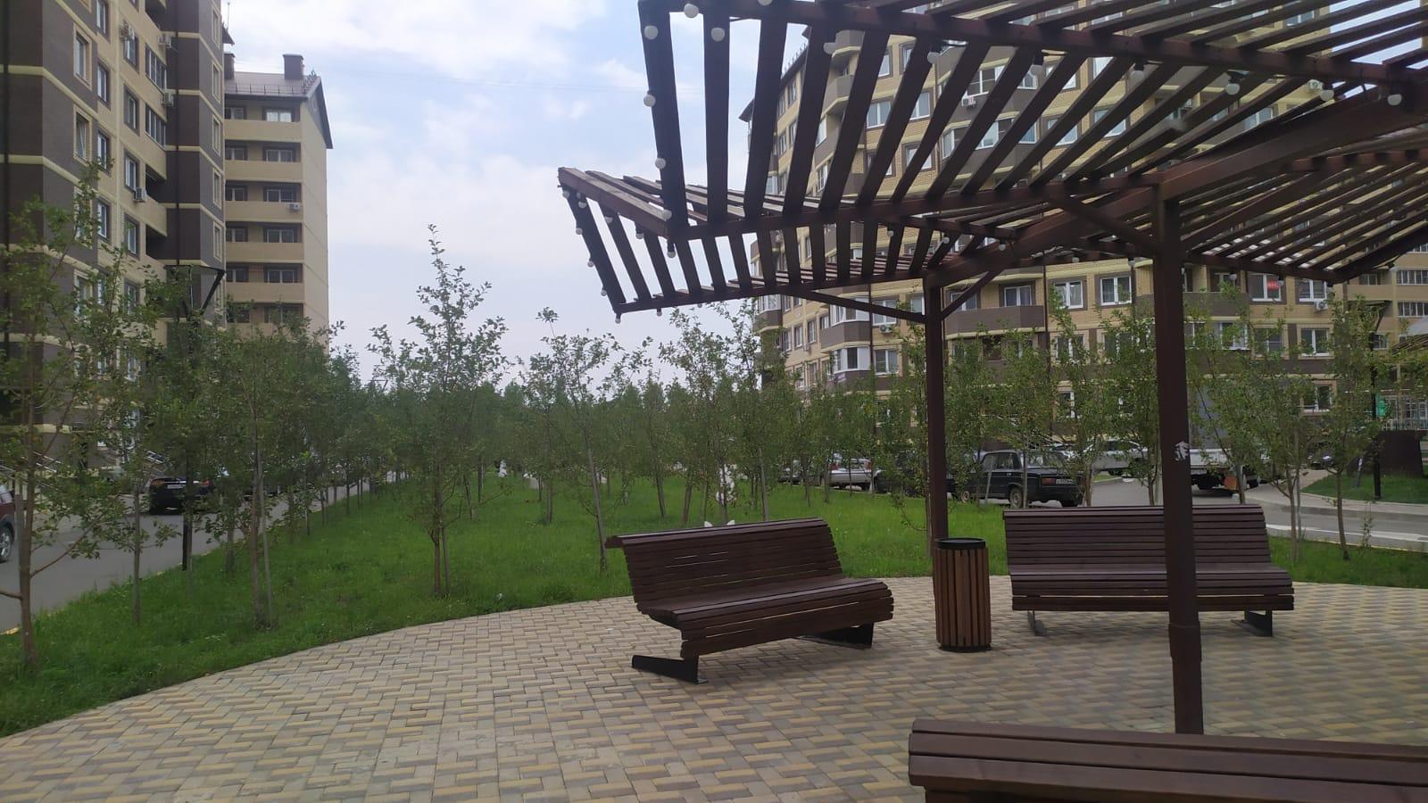 - Очень уютный спальный район с фруктовыми деревьями на территории комплекса!