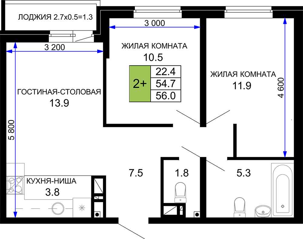| Площадь, кв.м. | 56 |