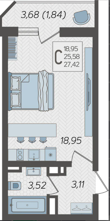 Продается Студия новостройка, 27.42 кв.м., 11/23 эт