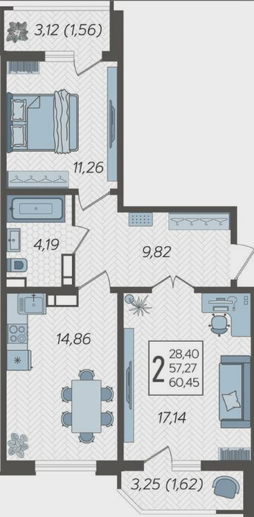 Продается 2-х комн. новостройка, 60.45 кв.м., 9/23 эт