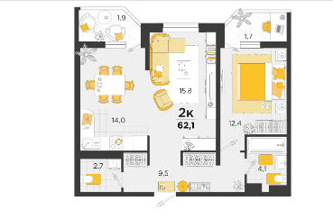 Продается 2-х комн. новостройка, 62.1 кв.м., 11/23 эт