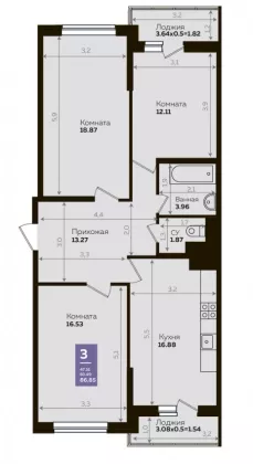 Трехкомнатная квартира в комплексе класса комфорт+ рядом с парком "Краснодар".