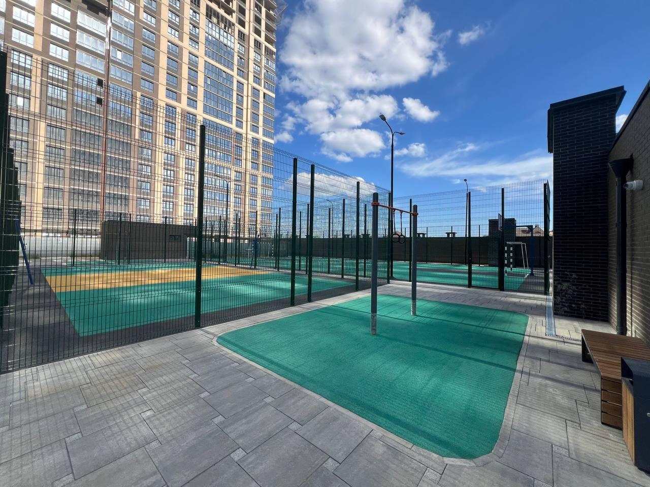 Закрытая территория, подземный паркинг, формат "двор без машин", детские и спортивные площадки, зоны отдыха, система умный дом - face id, видеонаблюдение по всему комплексу с возможностью подключения с любого смартфона (для жильцов). Просторные входные группы, колясочные, лапомойки, три скоростных лифта, два входа в подъезд.