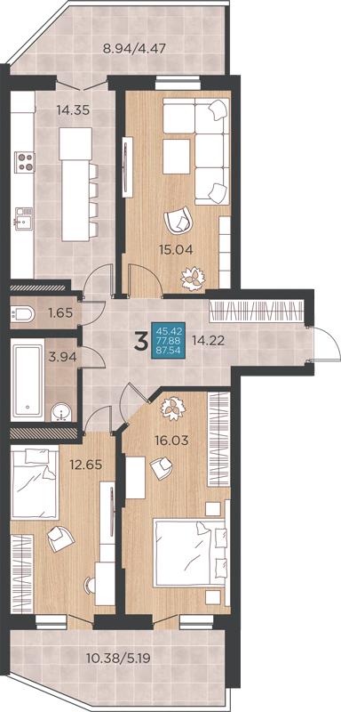 Трехкомнатная квартира в жилом комплексе класса «комфорт».