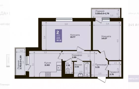 Продается 2-х комн. новостройка, 66.18 кв.м., 4/24 эт
