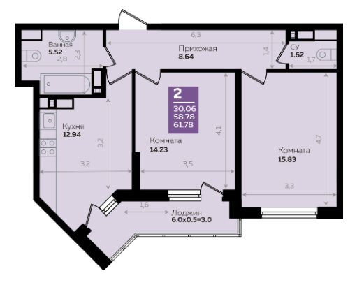 Продается 2-х комн. новостройка, 62.97 кв.м., 2/24 эт