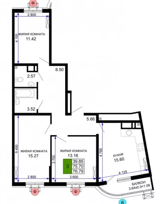 Продается 3-х комн. новостройка, 76.79 кв.м., 14/24 эт