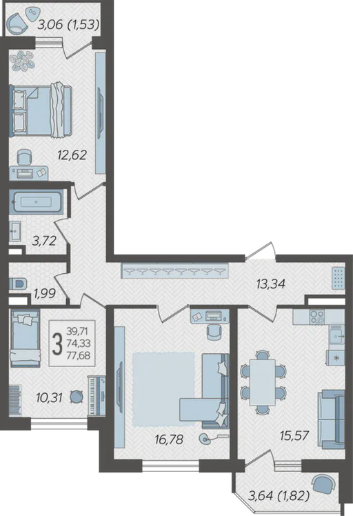 Продается 3-х комн. новостройка, 77.68 кв.м., 11/23 эт