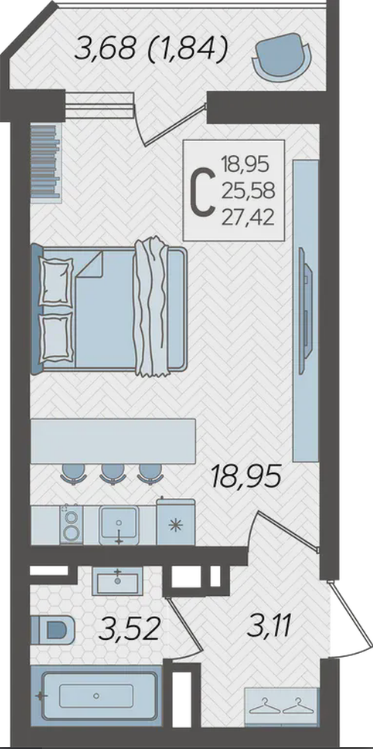 | Площадь, кв.м. | 27.42 |