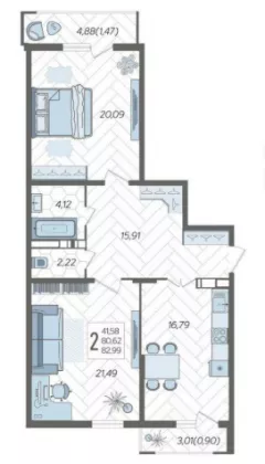 Продается 2-х комн. новостройка, 82.99 кв.м., 10/23 эт