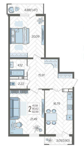 Продается 2-х комн. новостройка, 82.99 кв.м., 11/23 эт