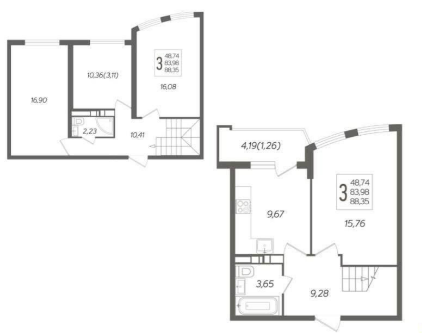 Продается 3-х комн. новостройка, 88.35 кв.м., 20/23 эт