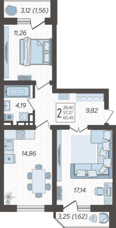 Продается 2-х комн. новостройка, 60.5 кв.м., 4/23 эт