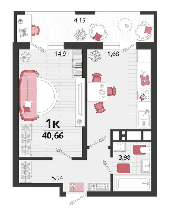 Однокомнатная квартира в современном микрорайоне по типу город в городе.