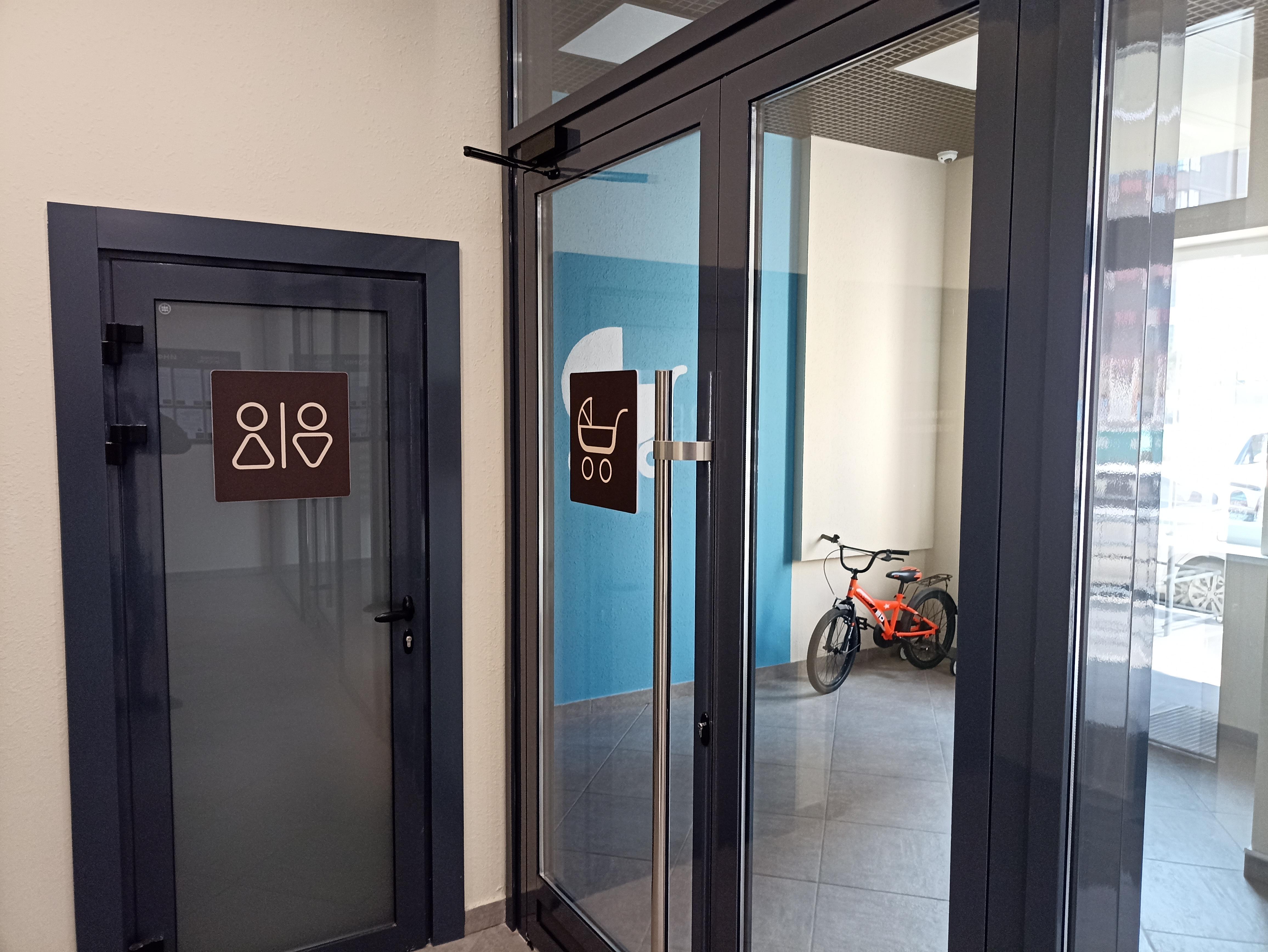 Просторные дворы с детскими и спортивными площадками, красивые входные группы, в каждом подъезде колясочная, лапомойка, туалет.