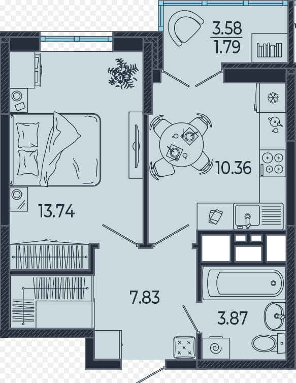 Продается однокомнатная новостройка, 38.25 кв.м., 9/21 эт