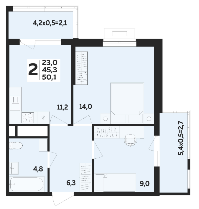| Площадь, кв.м. | 50.1 |