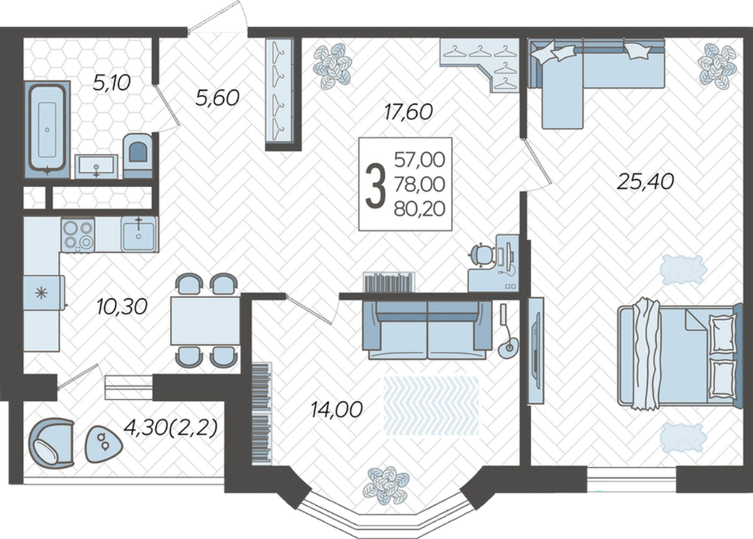 Продается 3-х комн. новостройка, 81.2 кв.м., 16/16 эт