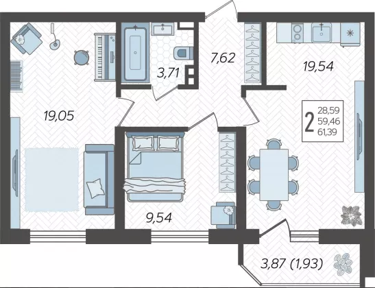 В избранное Двухкомнатная квартира