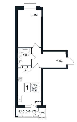 Продается однокомнатная новостройка, 55.15 кв.м., 7/12 эт