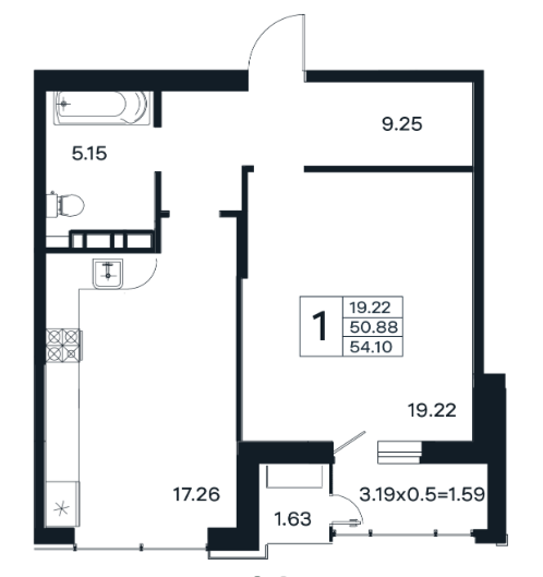 Продается однокомнатная новостройка, 54.1 кв.м., 9/12 эт