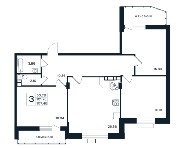 Продается 3-х комн. новостройка, 108 кв.м., 4/10 эт