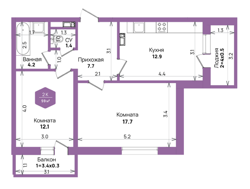 Продается 2-х комн. новостройка, 59 кв.м., 9/21 эт