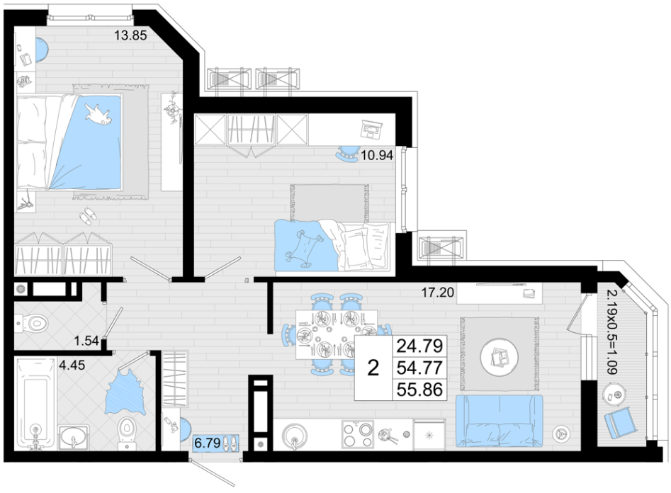 Продается 2-х комн. новостройка, 55.86 кв.м., 9/18 эт