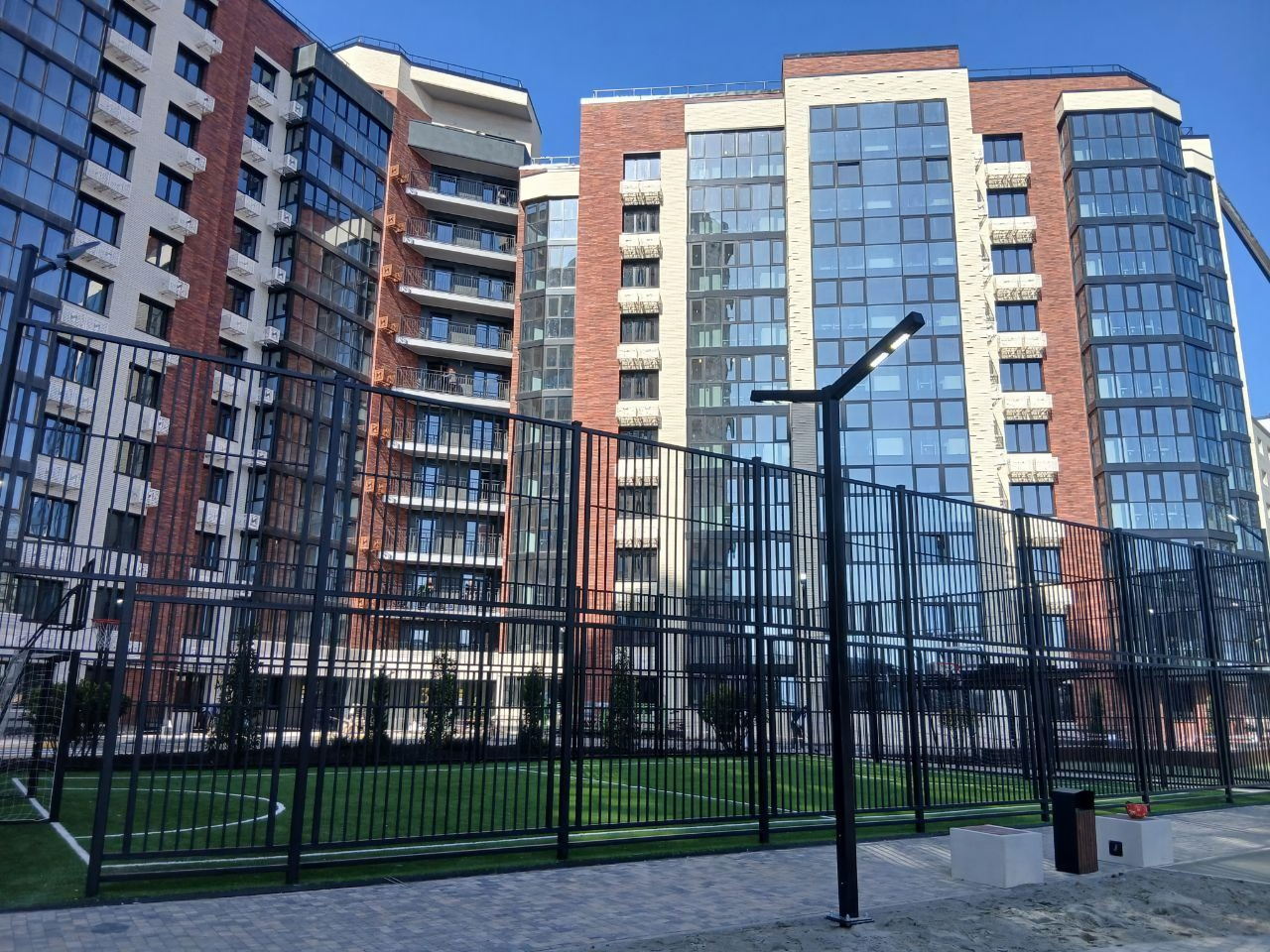 Закрытая, охраняемая территория, многоуровневый паркинг для резидентов, круглосуточный консьерж - сервис, дизайнерские входные группы, двор с ландшафтным озеленением и современными детскими и спортивными площадками.