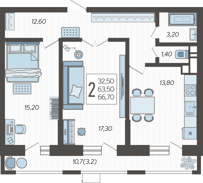 Продается 2-х комн. новостройка, 67.89 кв.м., 8/12 эт