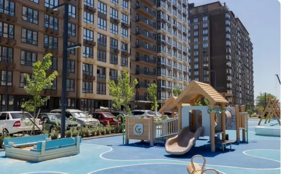 На территории комплекса организована безбарьерная среда, большое расстояние между домами, в каждом подъезде помещение для хранения колясок, самокатов, велосипедов.