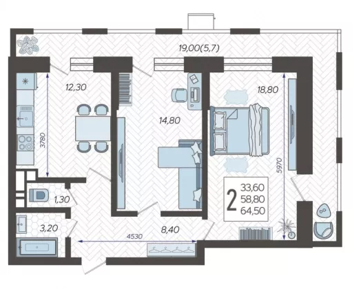 В избранное Двухкомнатная квартира