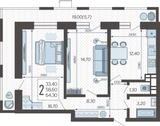 В избранное Двухкомнатная квартира