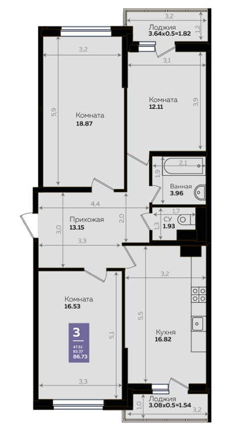 Площадь, кв.м.87.05