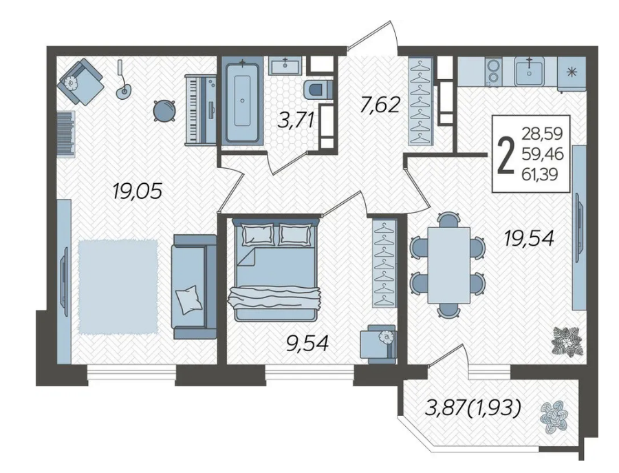 | Площадь, кв.м. | 61.39 |