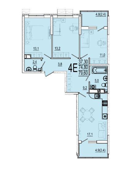 Продается 3-х комн. новостройка, 79.6 кв.м., 17/23 эт
