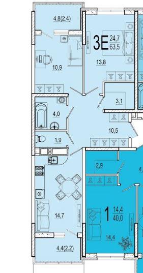 Продается 2-х комн. новостройка, 63.5 кв.м., 10/23 эт