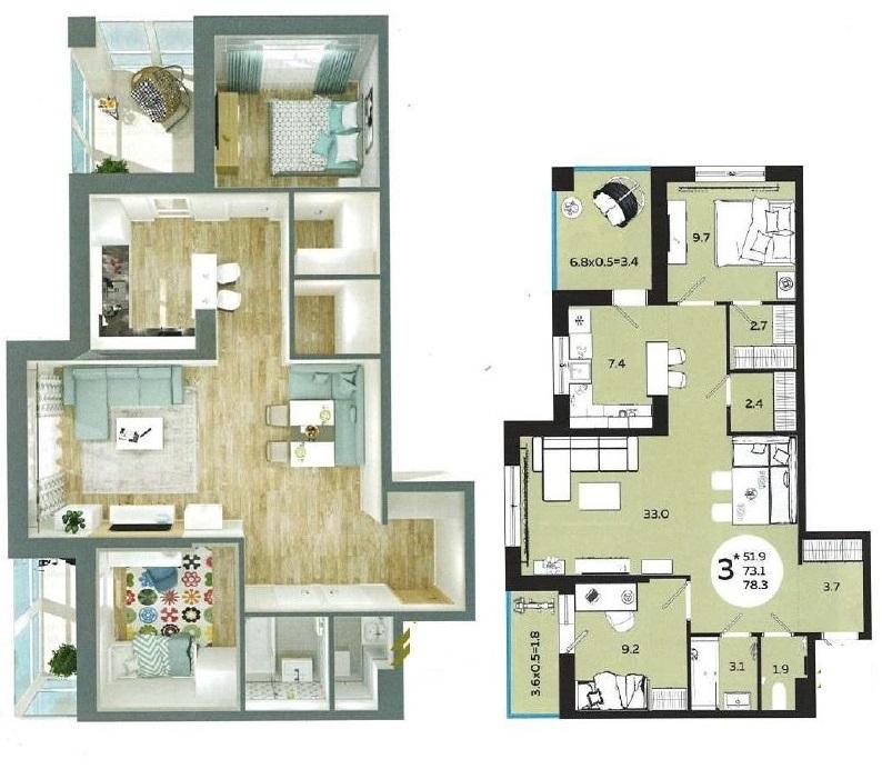 Продается 3-х комн. новостройка, 78.3 кв.м., 19/24 эт