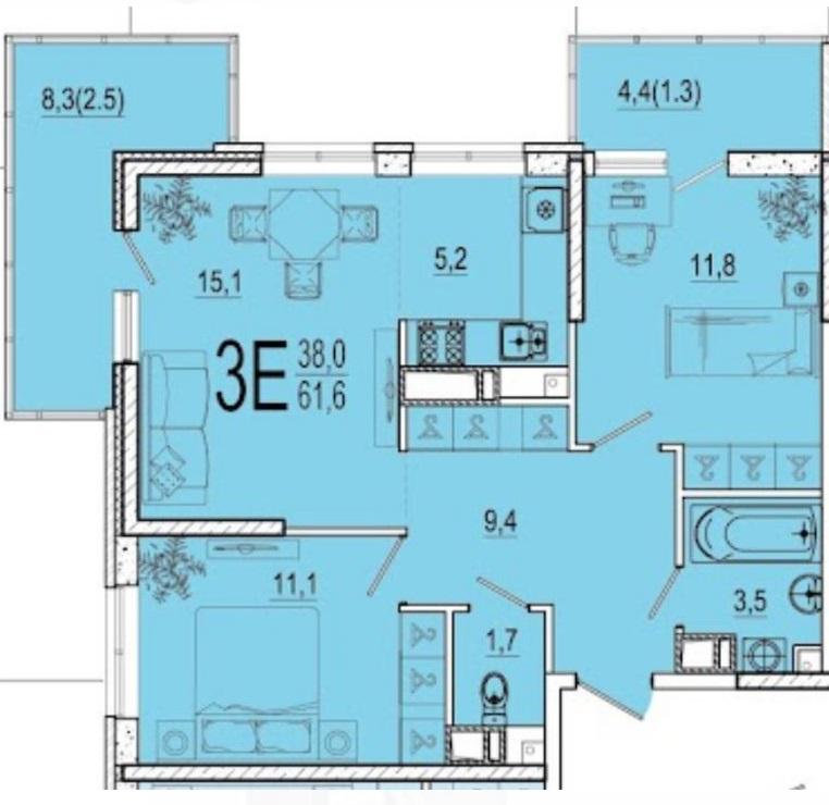 Продается 3-х комн. новостройка, 61.6 кв.м., 13/23 эт